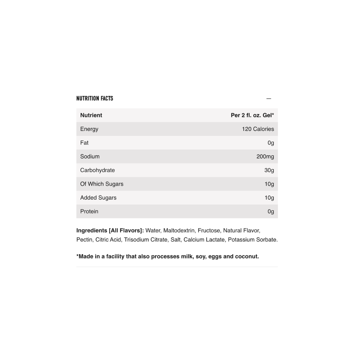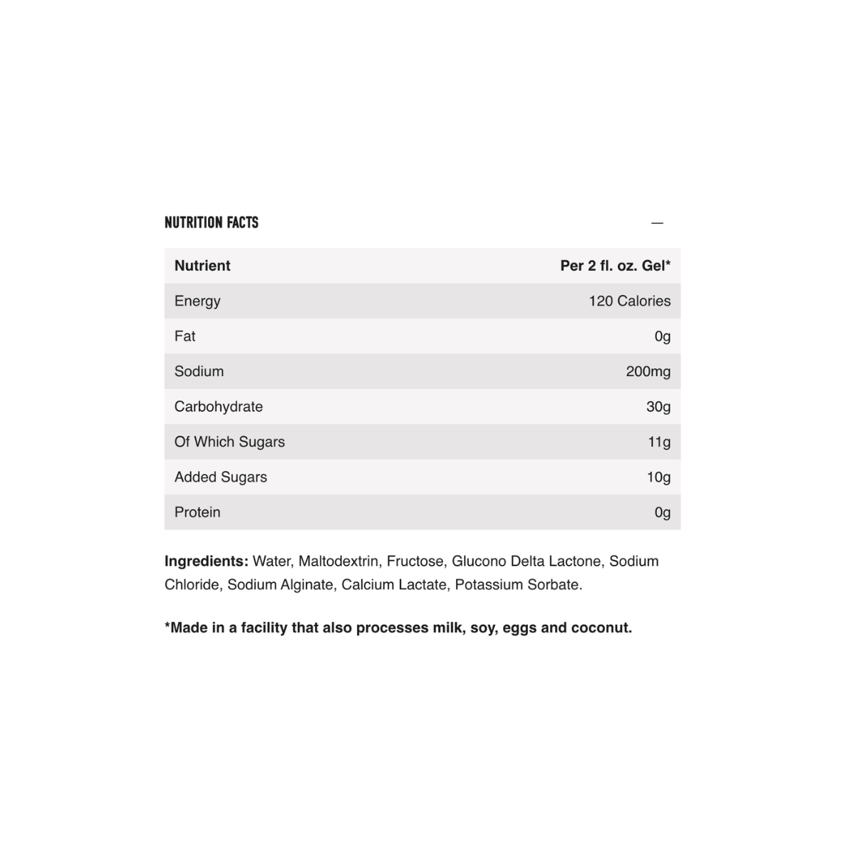 • 30g fast-absorbing carbohydrate per gel