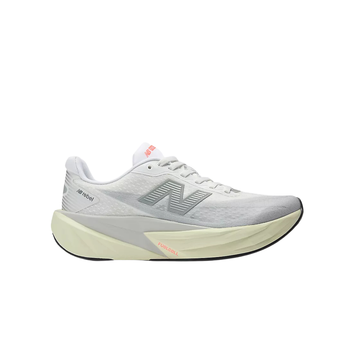 Crafted for the runner who wants speed without sacrificing comfort, the FuelCell Rebel v5 brings a lively ride in a lightweight, everyday package. Featuring a new PEBA/EVA blend midsole, this shoe delivers serious energy return with a soft, cushioned feel underfoot. A redesigned FantomFit upper offers a locked-in fit while maintaining breathability, and the updated outsole improves grip and durability without adding bulk. Whether you're pushing tempo or cruising recovery miles, the Rebel v5 is ready to dance.